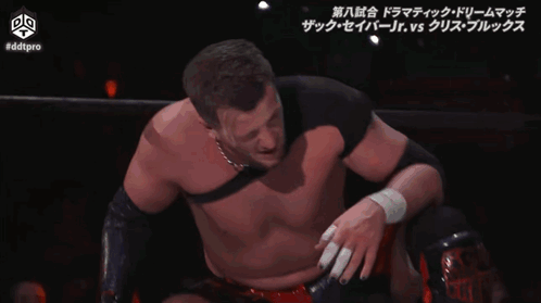 Content Description: a wrestling match is being shown on a screen with #ddtpro